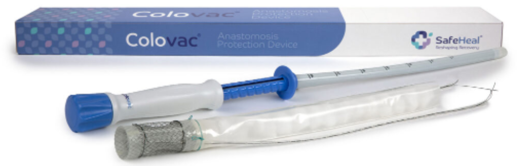 Indication for Use: The SafeHeal Colovac Device is intended for use in patients requiring low anterior rectal anastomoses to limit stoma creation to only those patients requiring more time for anastomosis healing when the device is removed, allowing patients with a healed anastomosis to avoid stoma creation. To reduce the risk of life-threatening complications, Colovac provides an alternative to stoma creation which prevents stoma related risks, including permanent stoma. The SafeHeal Colovac Device is indicated for use following open, laparoscopic, or robotic-assisted laparoscopic colorectal surgery in patients indicated for diverting ostomy.